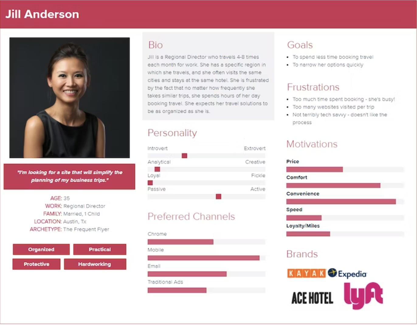 Create a distinct persona for each user segment. Give each persona a name and a face (usually a stock photo), and include details about their demographics, motivations, behaviors, and pain points. You might also include quotes or narratives to bring the persona to life.