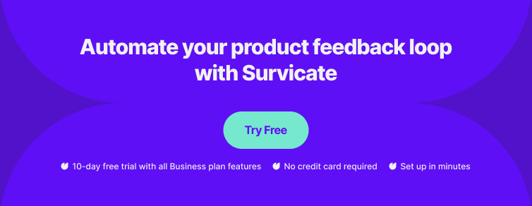 If you're looking for a user insights platform, try out Survicate–a powerful and effortless feedback management platform to organize insights and collect feedback across the user journey.