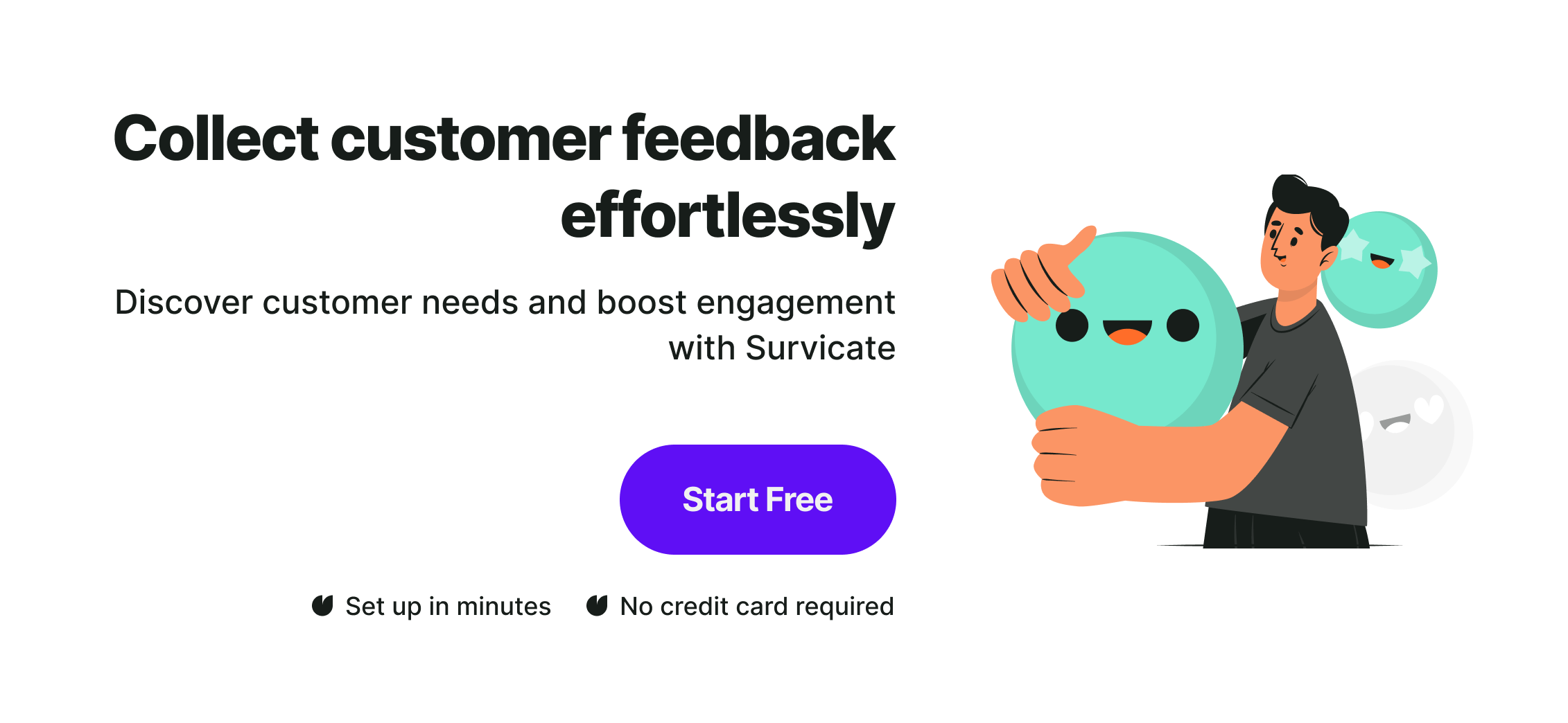 Is a free tool what you're looking for? Build professional-looking surveys using Survicate. It’s the survey creator that lets you collect continuous customer feedback with ease.