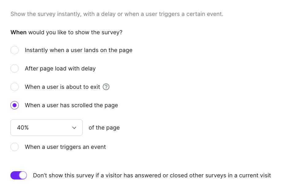 Website surveys can also be triggered with delay or when you suspect users are about to leave the site.
